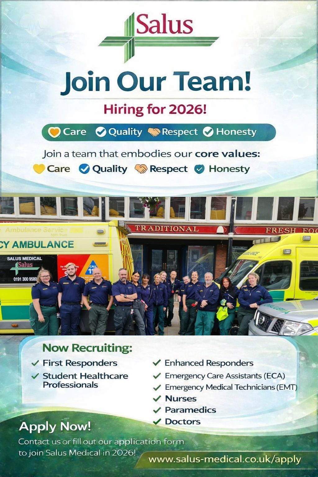 We are always on the lookout for new staff to join our team of event medical professionals covering our events across the North East, Yorkshire and the wider UK.